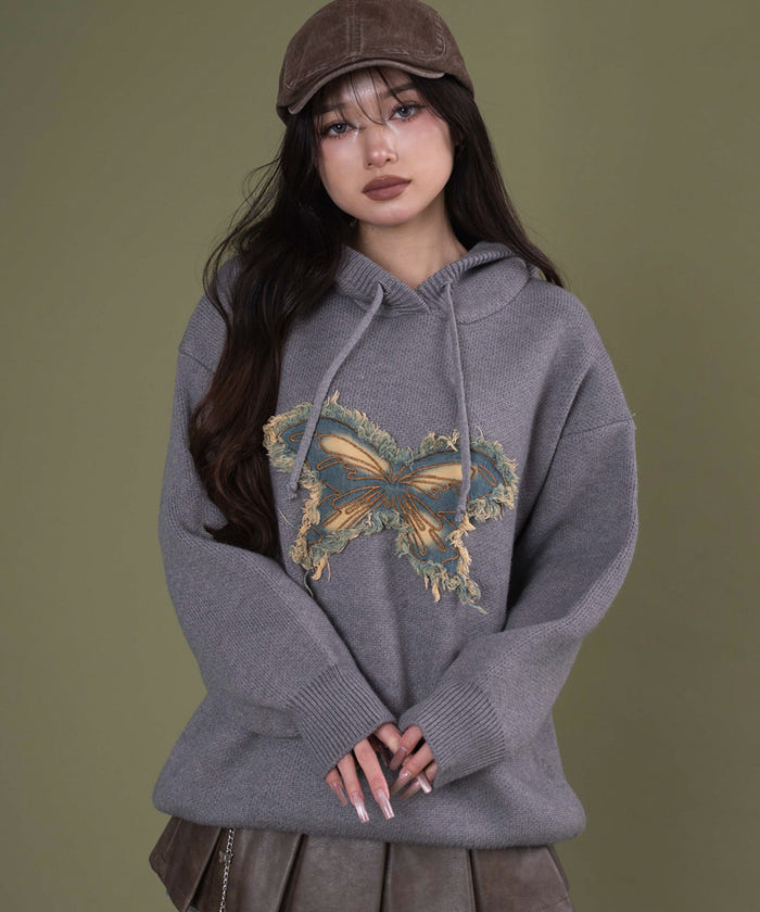 フラッフィーグラフィックジャガードニットZIPパーカー