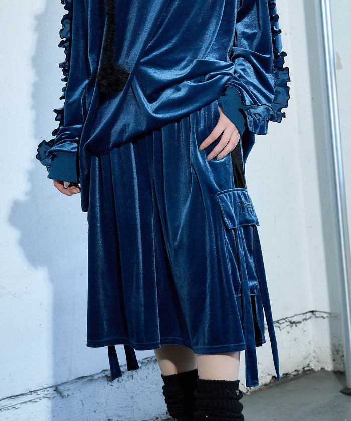プリーツヘムフリンジデニムミニスカート《新色登場》