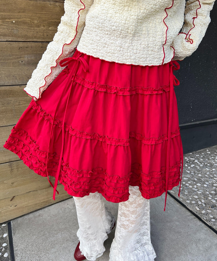 サテンフリルティアードミニスカート