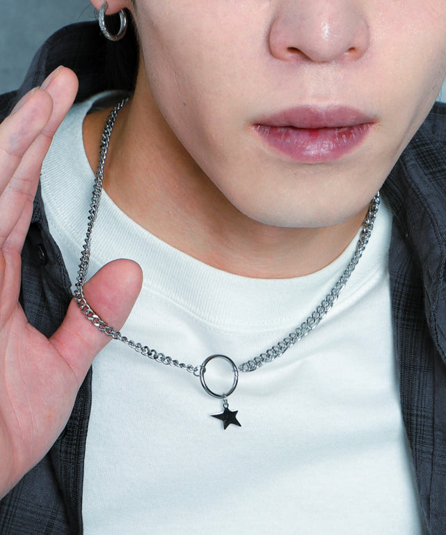 Mミニモチーフステンレスリングネックレス