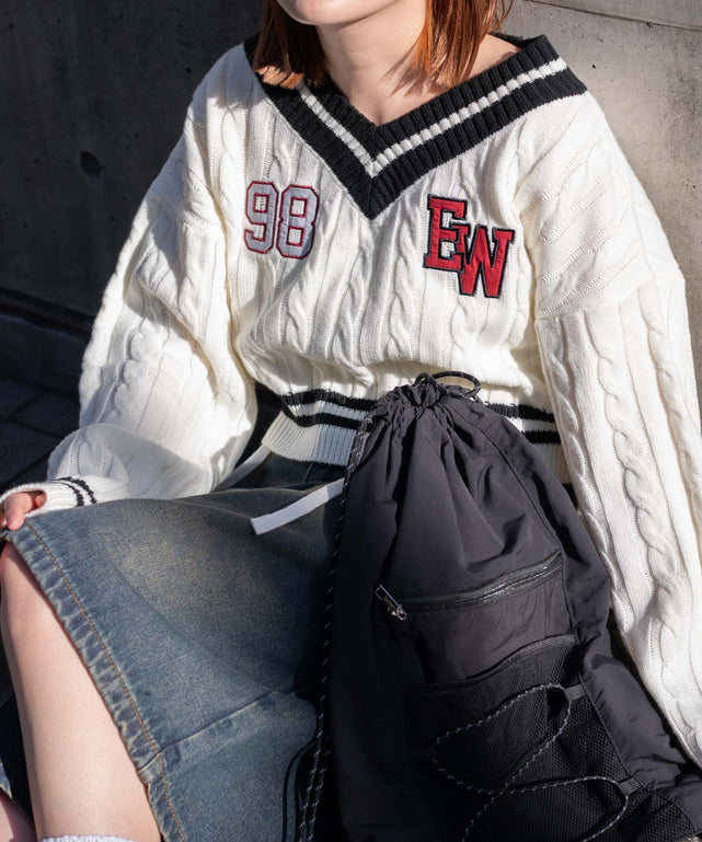 ナンバリングジャガードVネックニット