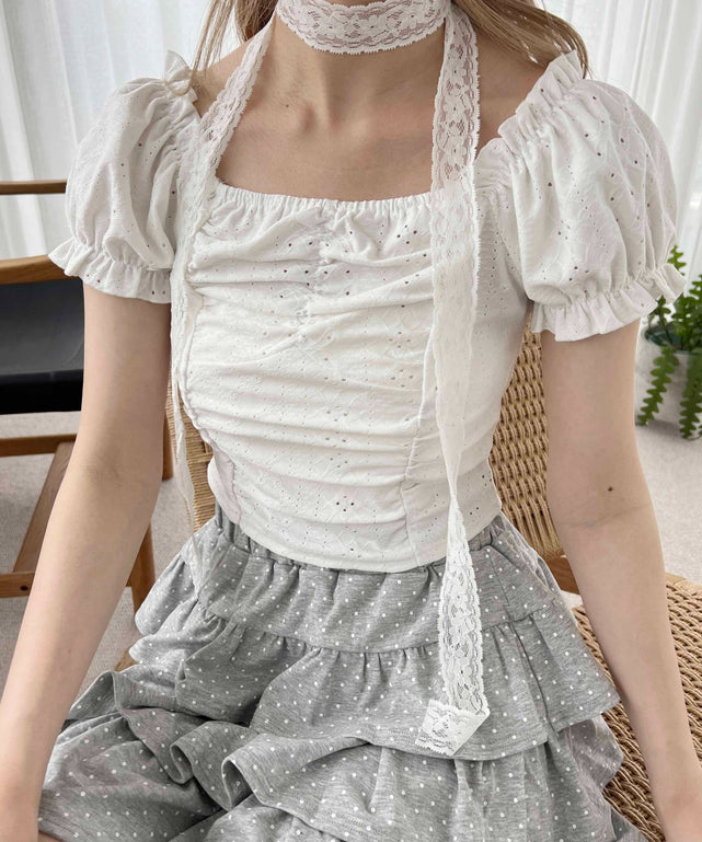 リボンセットレースデザイントップス