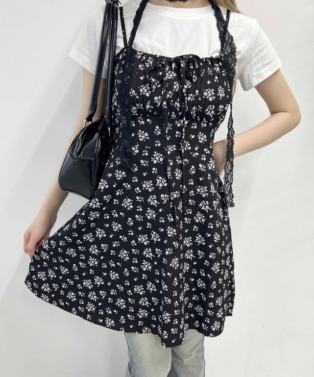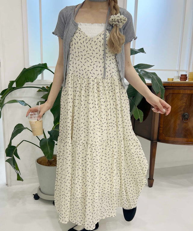フロントリボンフラワーキャミワンピース