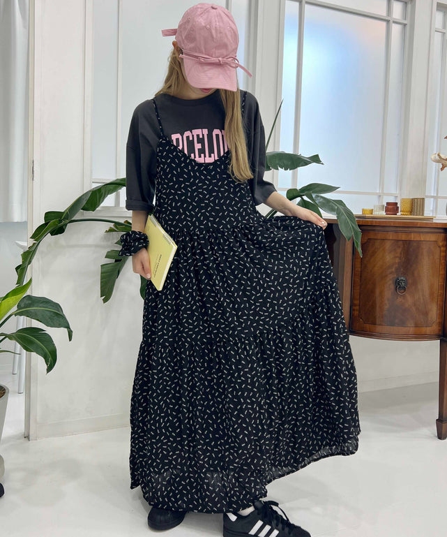 シュシュセットフラワーロングキャミワンピース