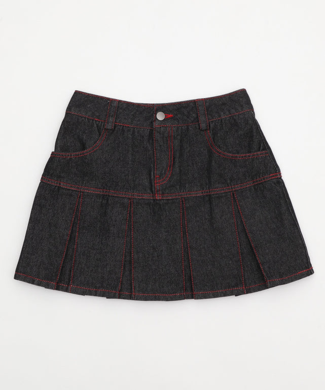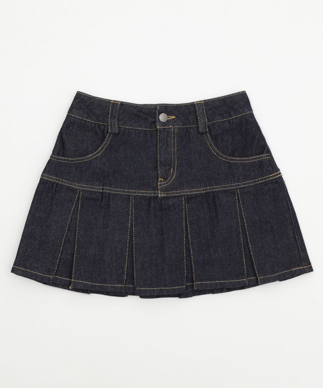プリーツヘムフリンジデニムミニスカート《新色登場》