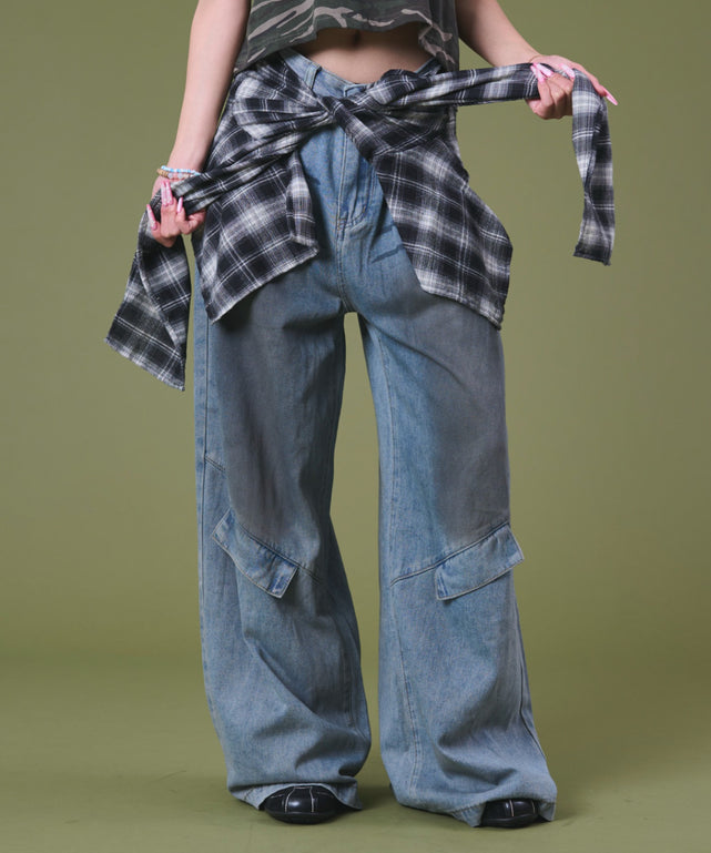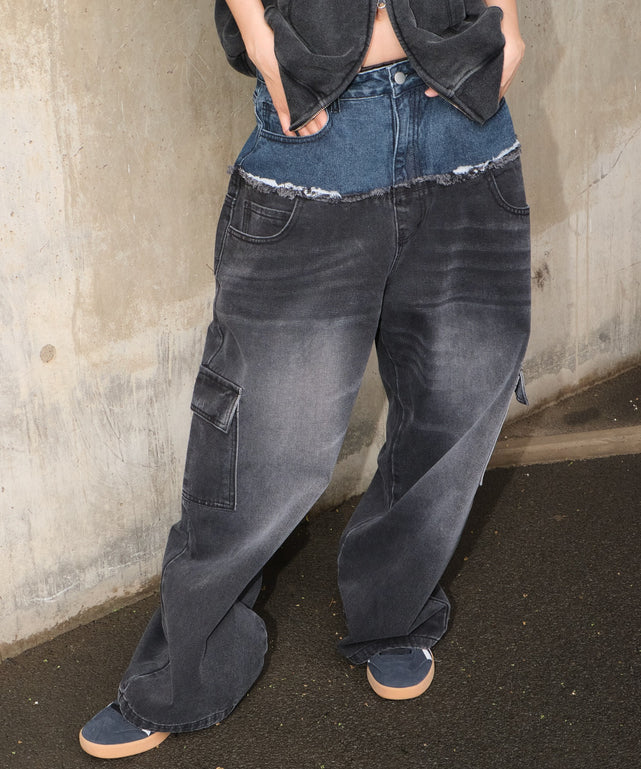 ダブルウエストカーゴデニムパンツ
