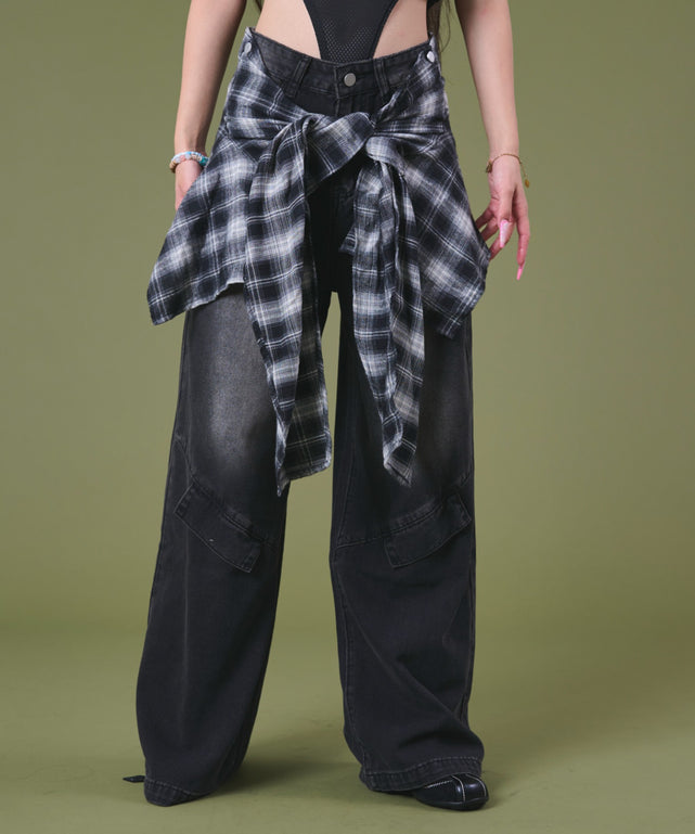 デストロイチェックバギーデニム