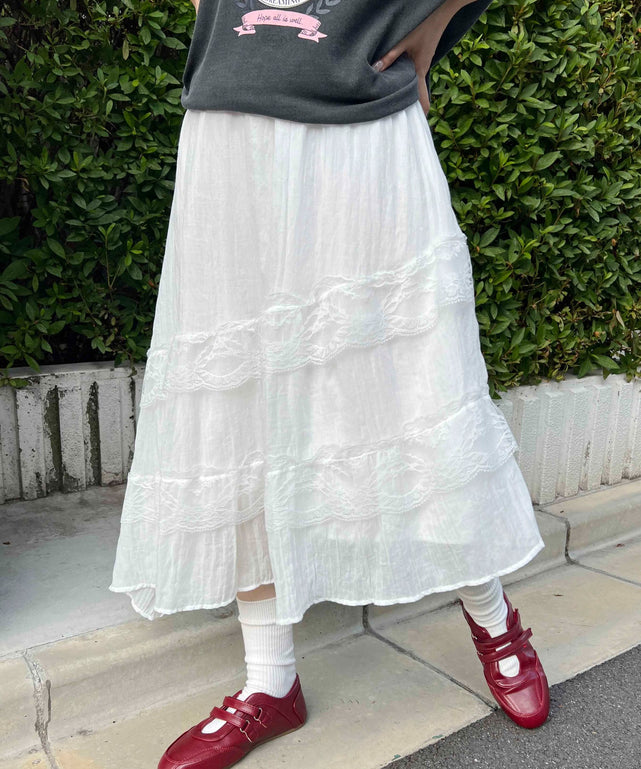 ボリュームレースロングスカート