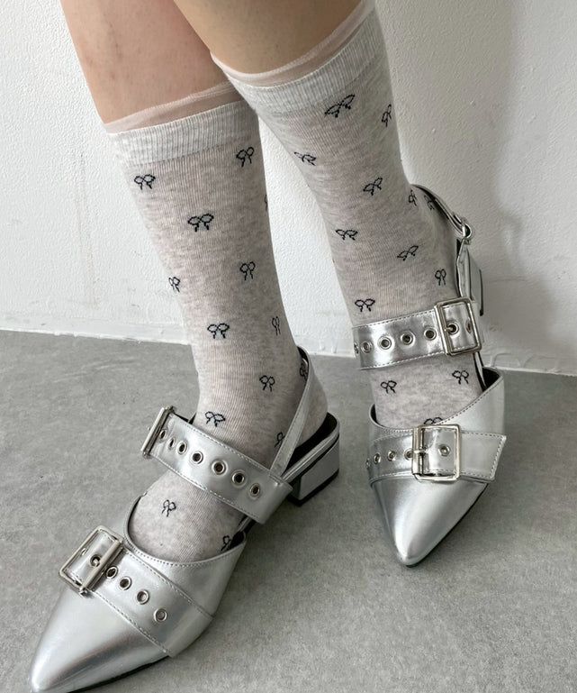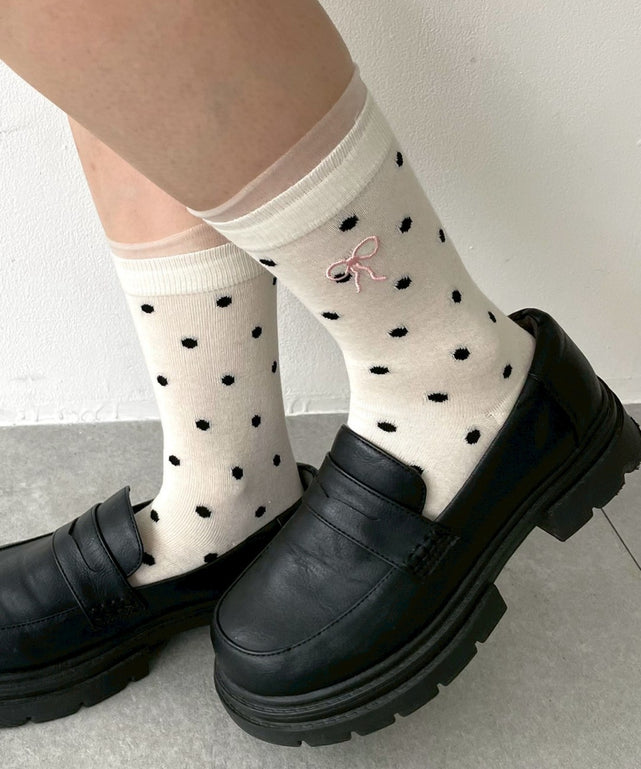 リボン刺繍アンクルパイルソックス(23-25cm)