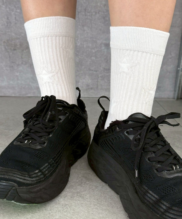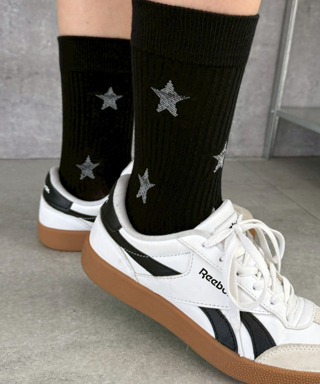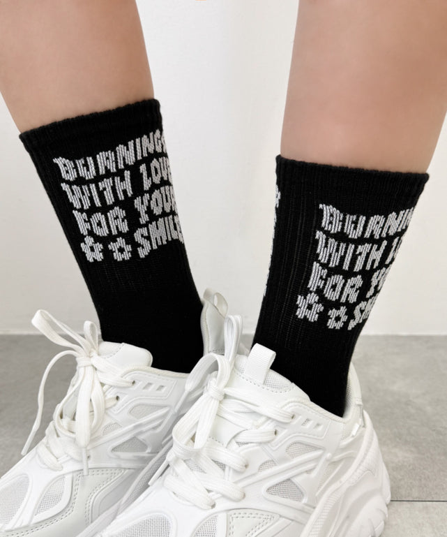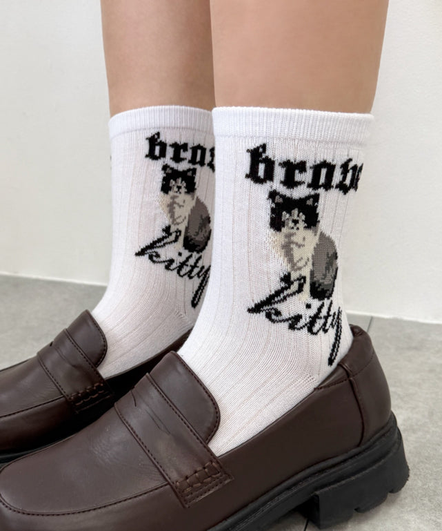 ラインモコイヌ刺繍クルーソックス(23-25cm)
