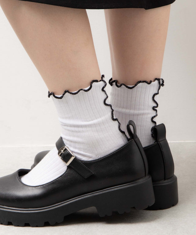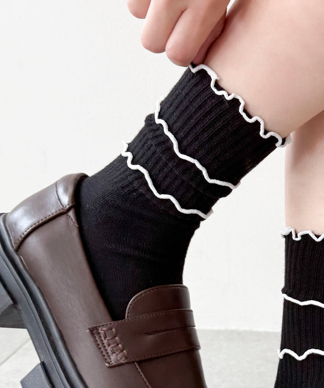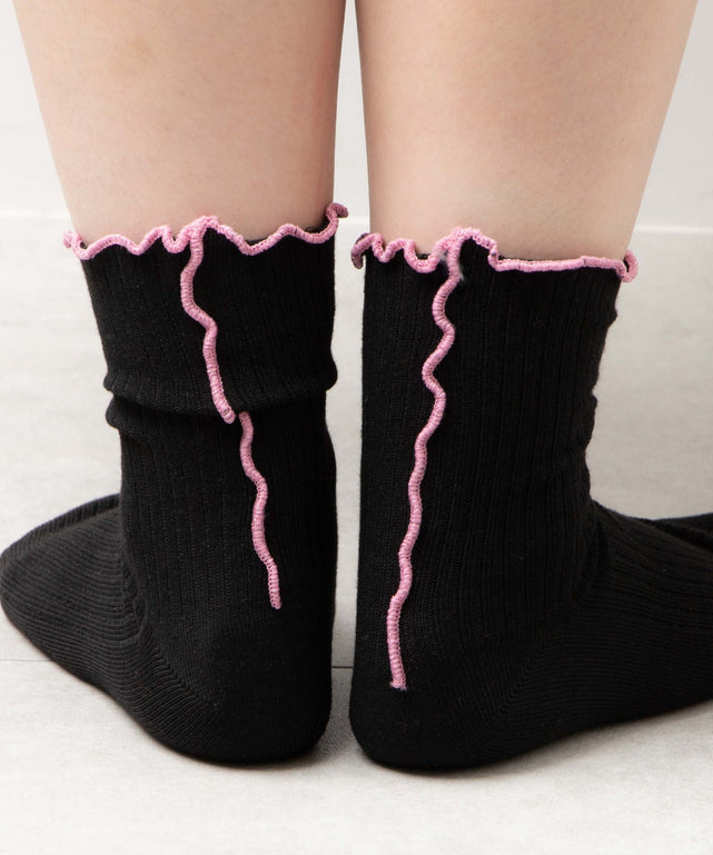ニュアンスリブ底パイルクルーソックス(23-25cm)
