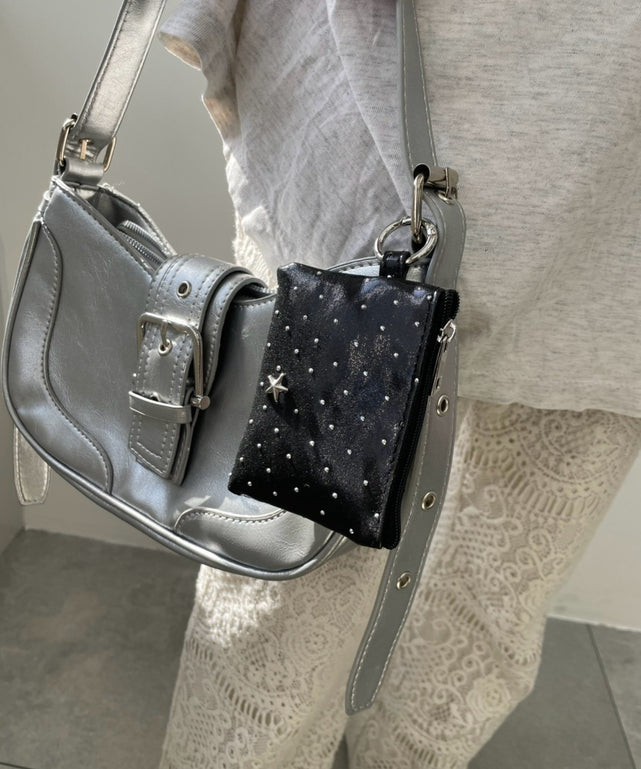 ワンポイントスタッズスクエアポーチ