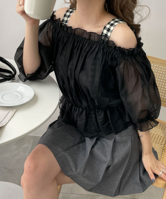 マルチWAY楊柳シアーシャーリングリボンブラウス