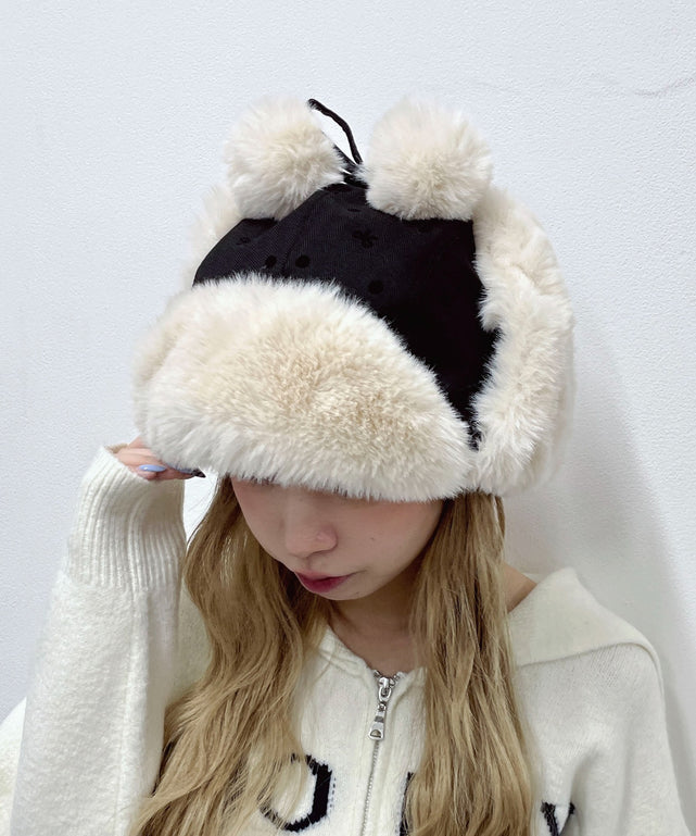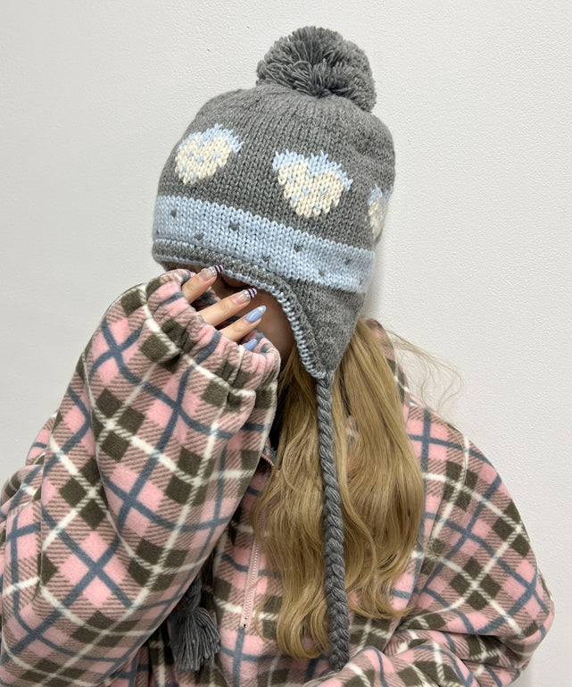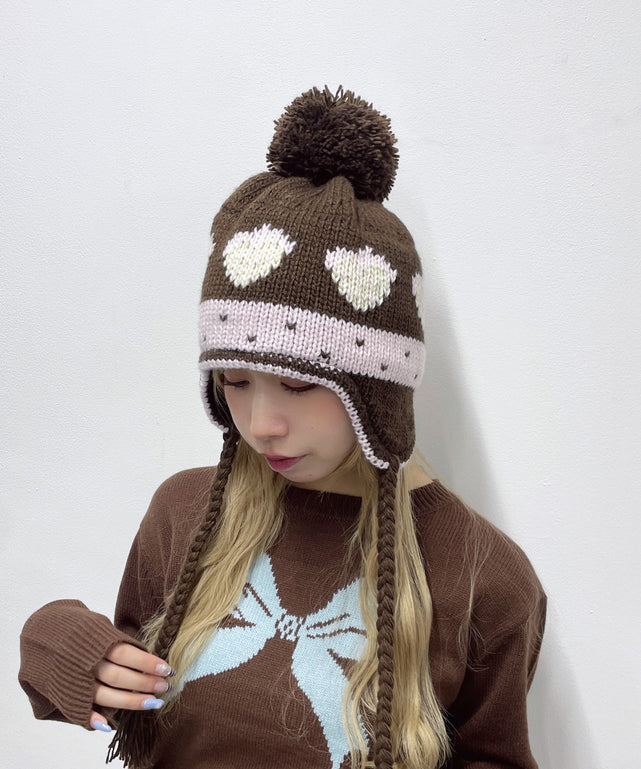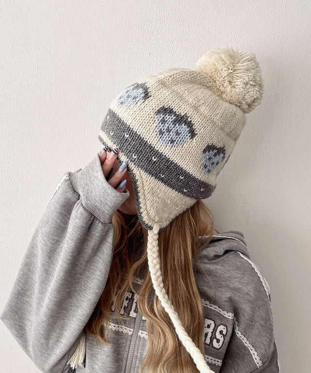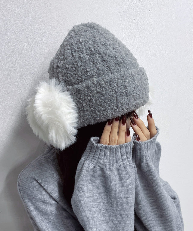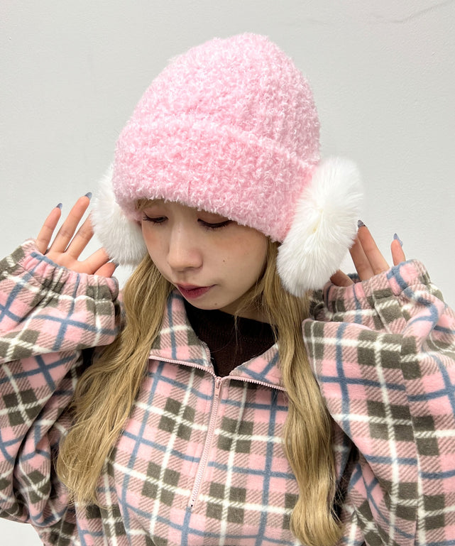 ポンポンイヤーニットキャップ
