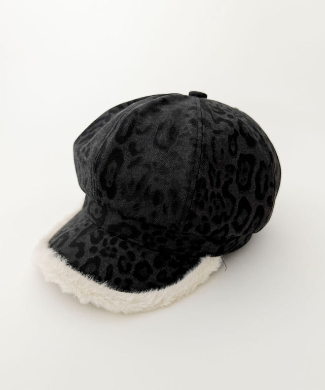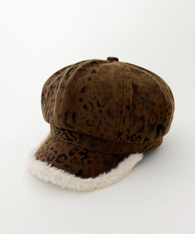 ファー付きレオパードキャスケット