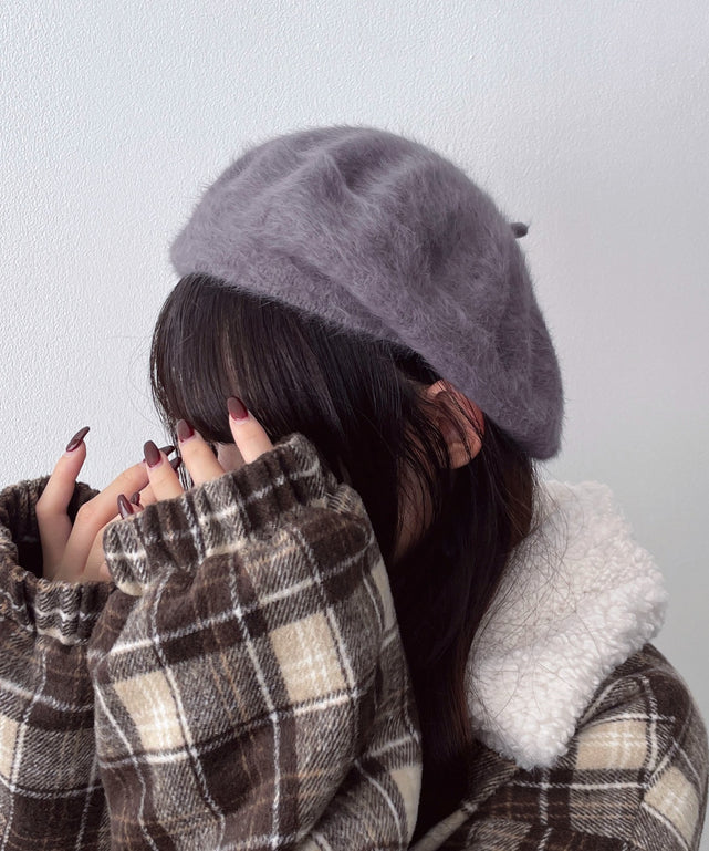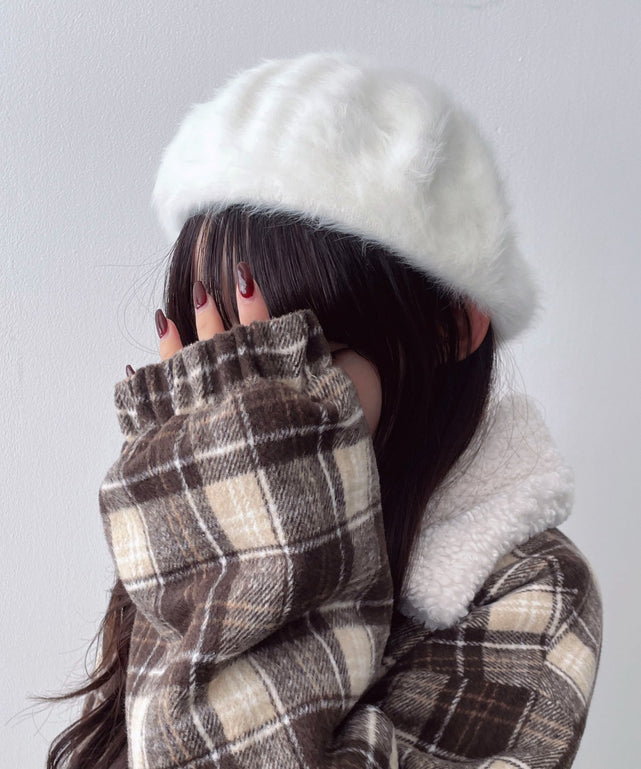 チェック柄Fスエードキャスケット