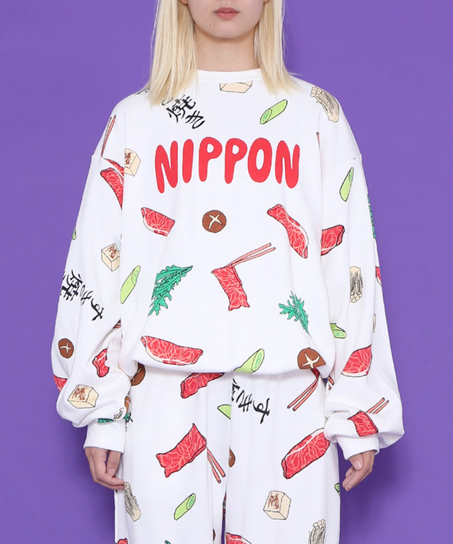 フード総柄スウェット(NATTO_YAKINIKU_ONIGIRI)
