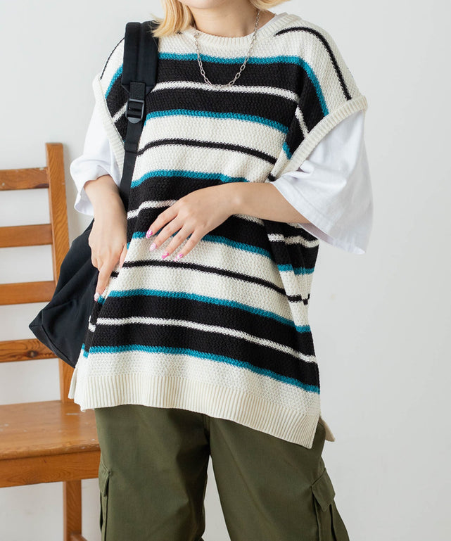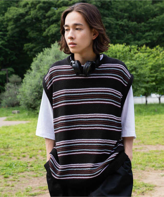 レトロボーダーニットベスト
