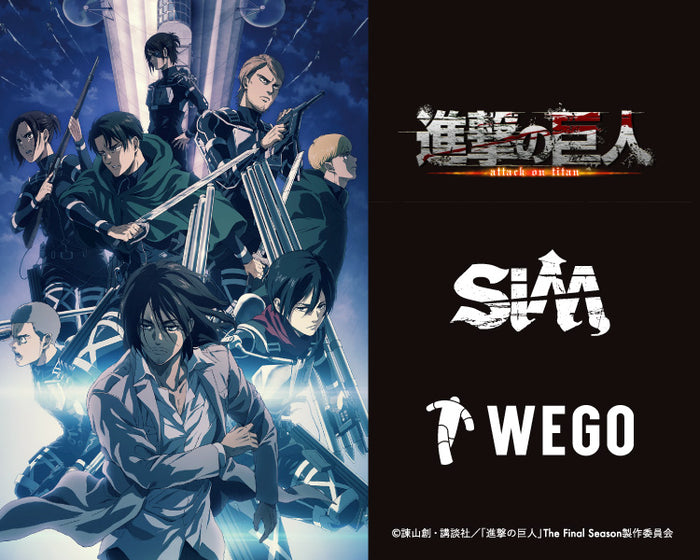 TVアニメ「進撃の巨人」と、オープニング楽曲を手掛けるレゲエパンクバンド「SiM」、そして「WEGO」によるトリプルコラボアイテム!