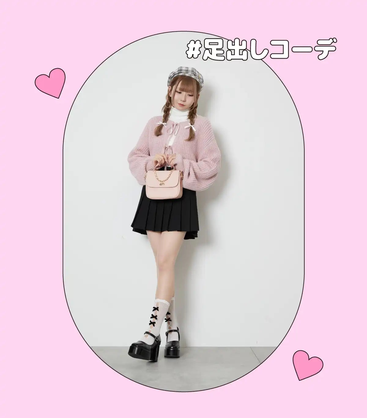 柔らかいピンク色のカーデと今流行りのリボンアイテムで