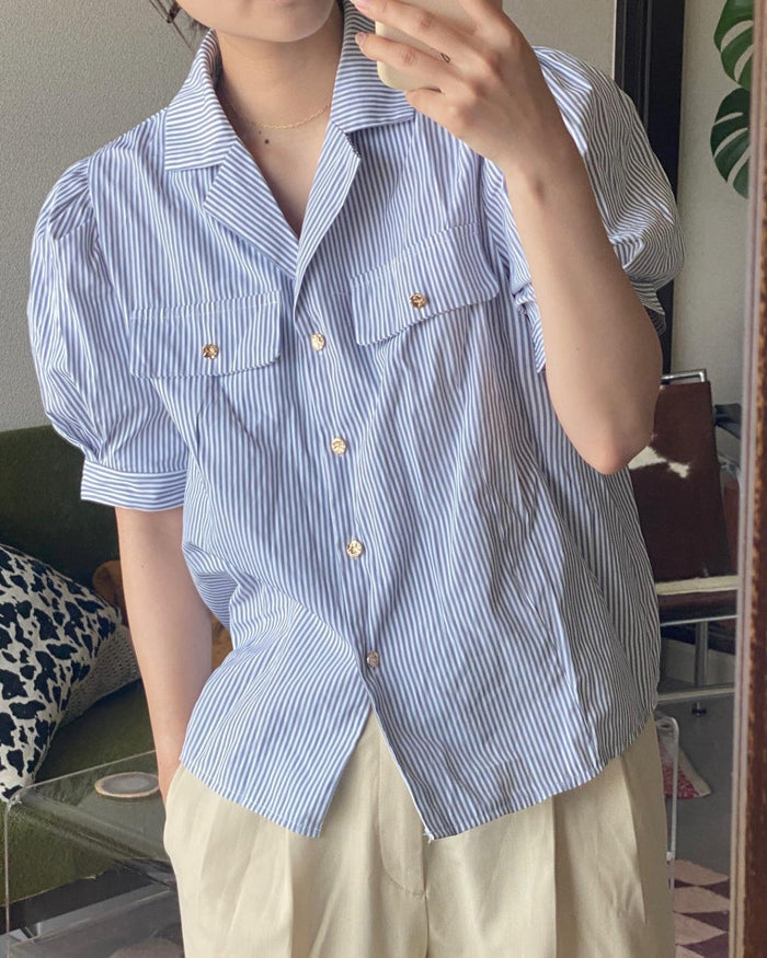 パフスリーブストライプシャツ
