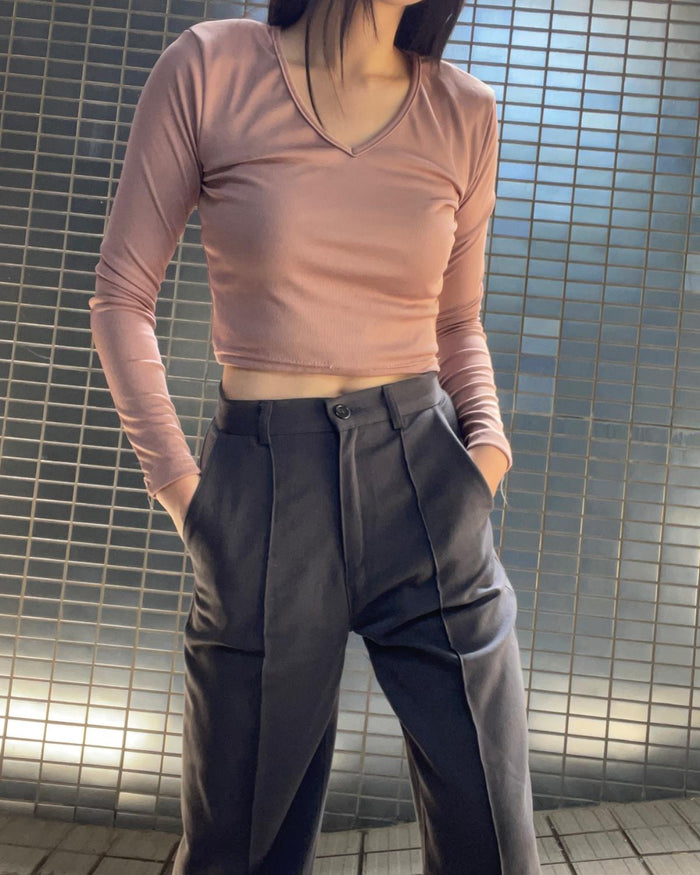 Vネックショートトップス