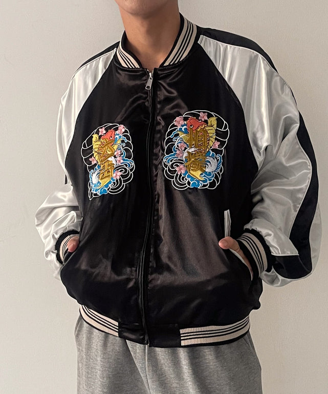 薄手で軽やかな着心地のスカジャンは一つあると春先や秋口のライトアウターとして活躍。
