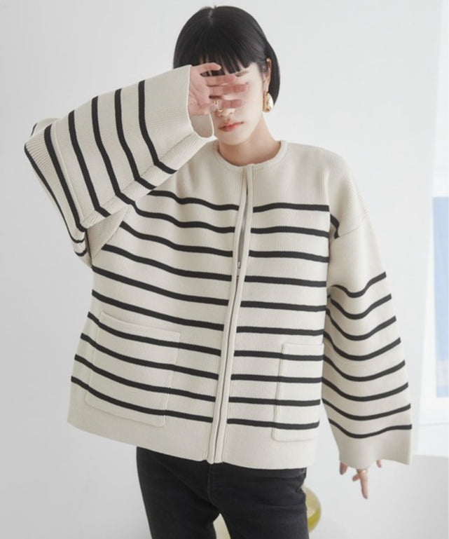ゆったりとしたワイドシルエットとランタンスリーブが今年らしいニットブルゾンが登場!