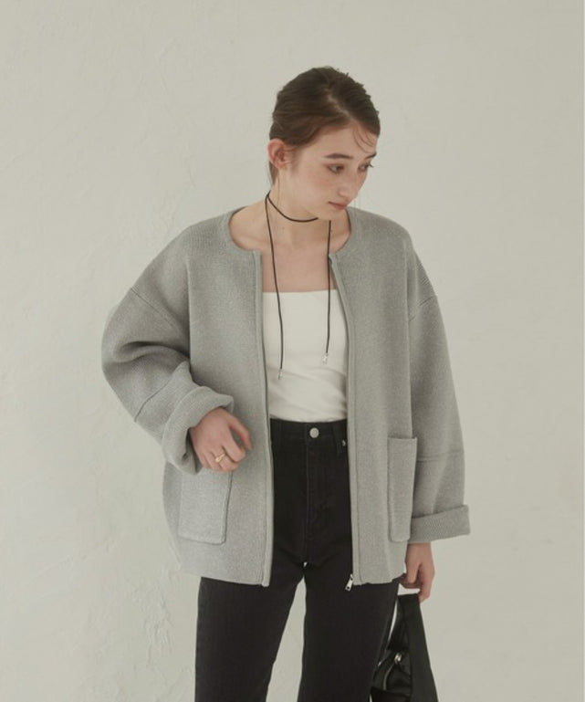 スポンジのように軽く、ふわモチっとした肌触りのオーバーサイズのニットブルゾン。