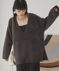 ダブルフェイスシャギーVネックプルオーバー