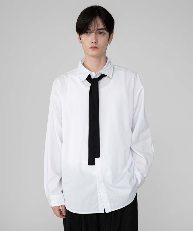 ネクタイはボタンで取り外し可能で、シャツ1枚で着用いただけます。