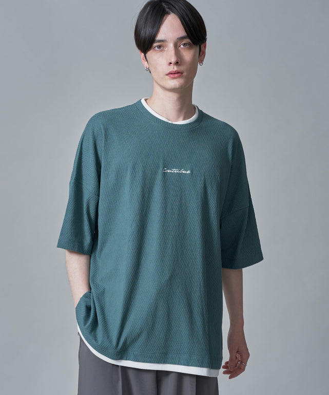 【クリーンな印象のフクレジャガードフェイクレイヤードTシャツ】