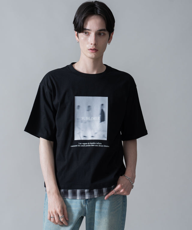 【チェックシャツを重ね着したようなデザインのTシャツ】