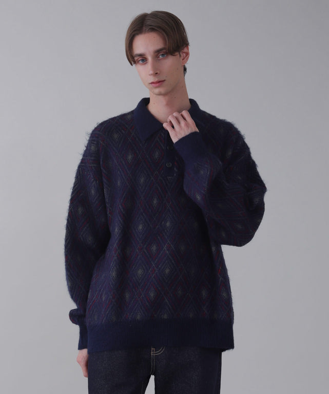 【程よくクラシックな雰囲気を漂わせるアーガイル柄のニットポロ】
