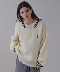 【胸元のワンポイント刺繍がさりげないアクセントになるニットポロ】