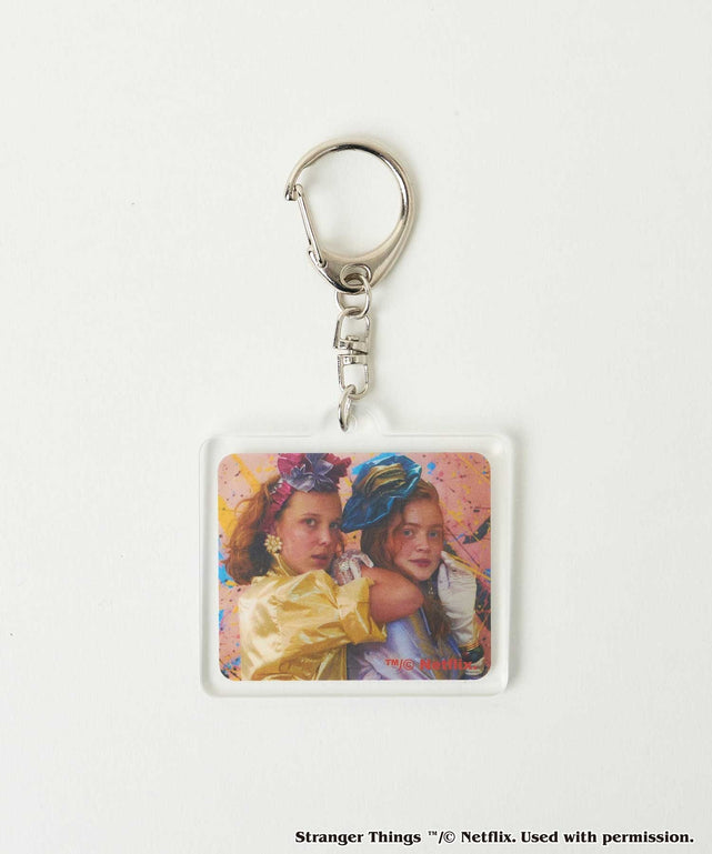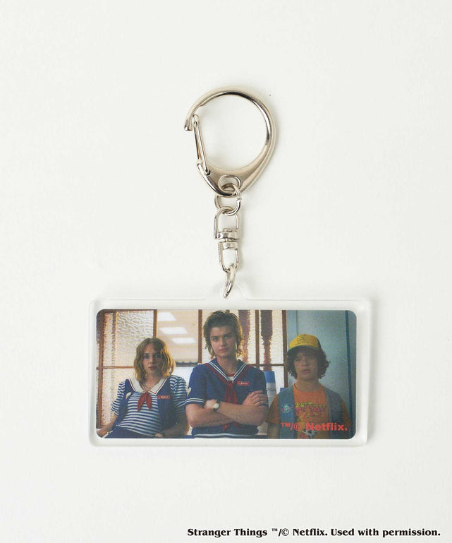 ストレンジャー・シングスのシーンやロゴがモチーフになったキーホルダー。