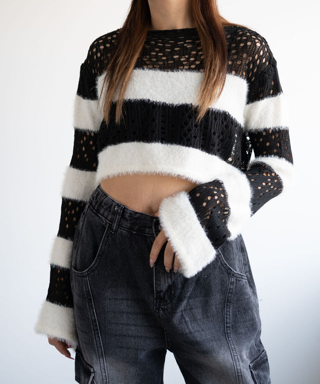 シャギー部分とメッシュニットの部分があり