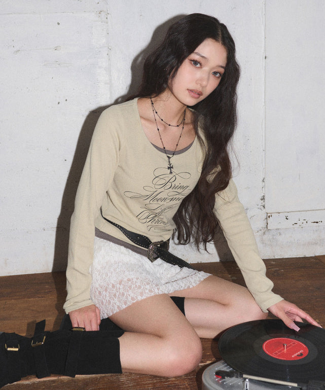 シアーインナーをレイヤードしたようなデザインが魅力のグラフィックTOP。