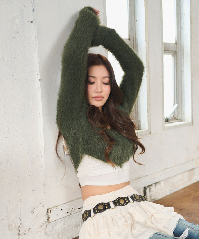 シャギーショートニットカーデ