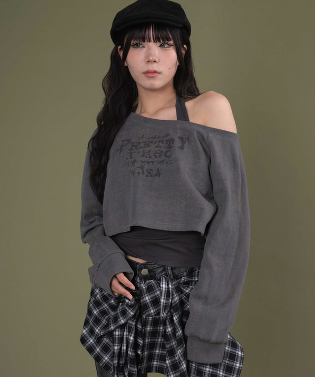 エイジング加工で仕上げた、こなれ感たっぷりのオフショルダースウェット。
