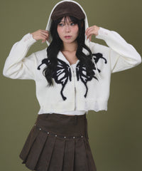 フロントに大胆に入ったバタフライモチーフが視線を奪う、主役級のニットパーカー。