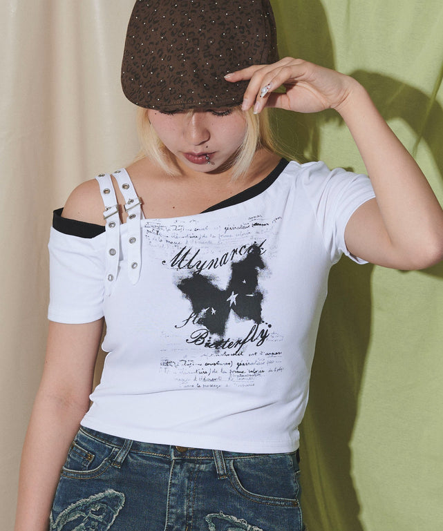 バタフライオフショルピチT