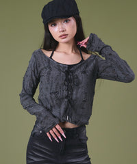 【1枚で決まる!レイヤードダメージレースアップトップス】