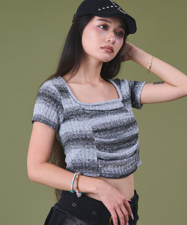 【オンブレボーダーが目をひくコンパクトトップス♪】