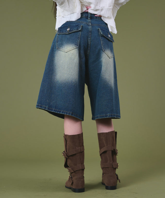 バックフラップポケットデニムハーフパンツ