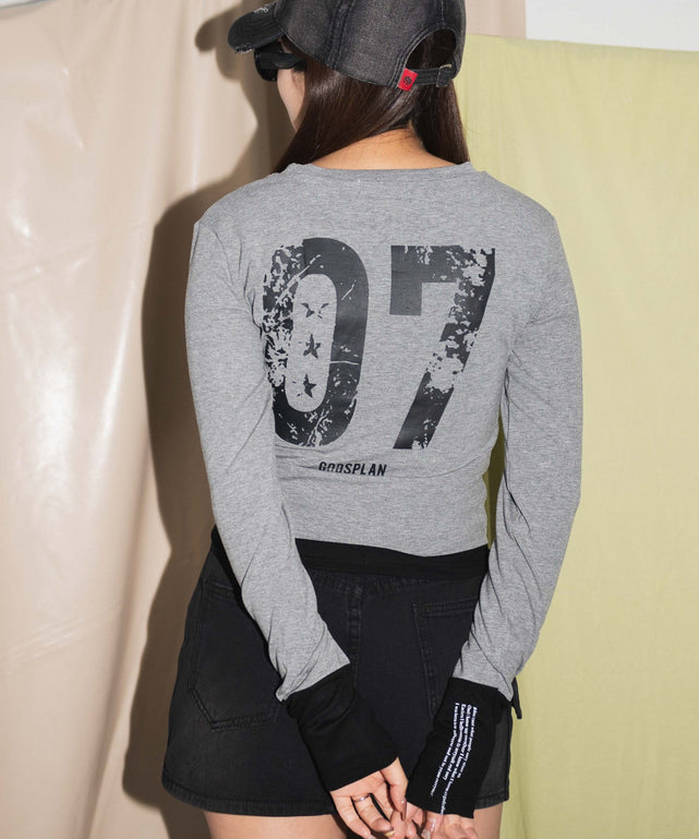 ナンバリングレイヤードトップス/グレー モデル:155cm F着用