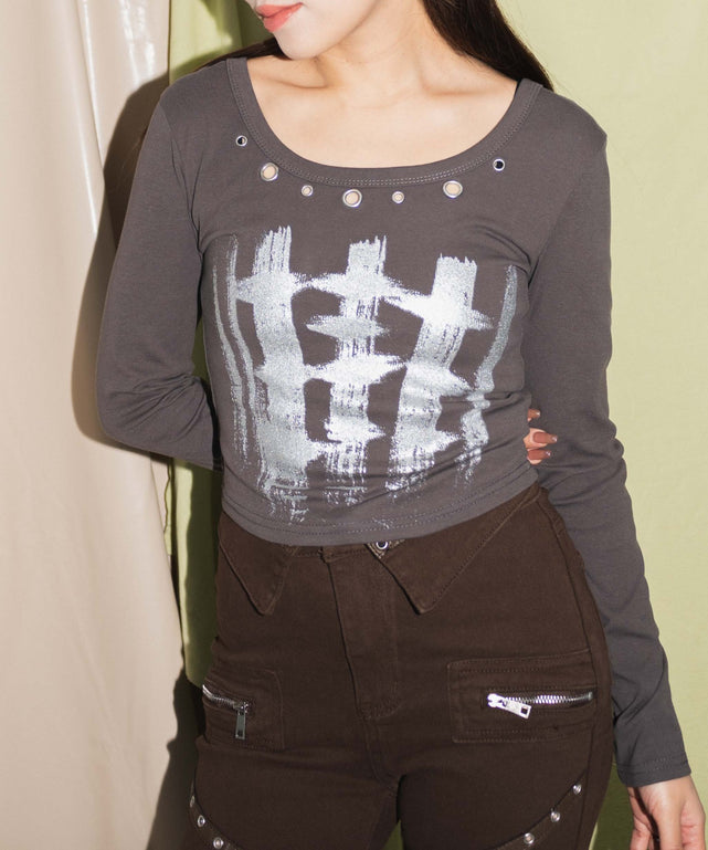 ハトメネックグラフィックピチトップス