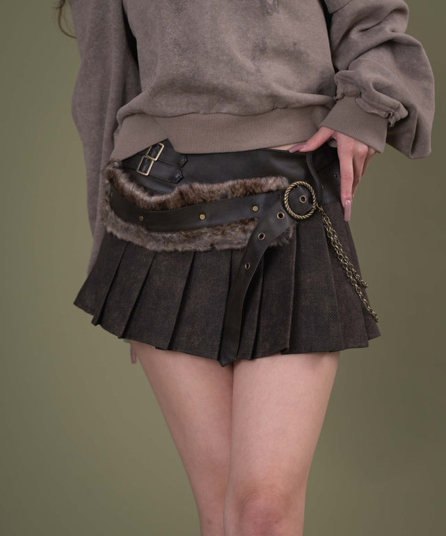 立体感のあるプリーツに、ファーベルト&チェーンをプラスした存在感抜群のスカパン。