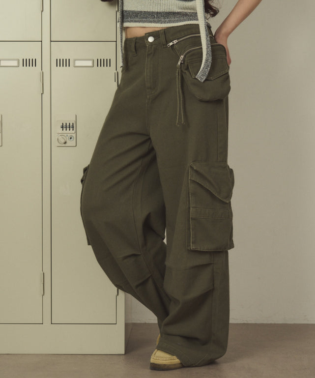 最大のポイントは、ベルトループに付いた取り外し可能なミニポーチ。デザインのアクセントとしてはもちろん、小物の収納にも便利な遊び心ある仕様です。