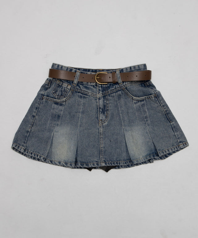 ベルト付きウォッシュドデニムミニスカパン